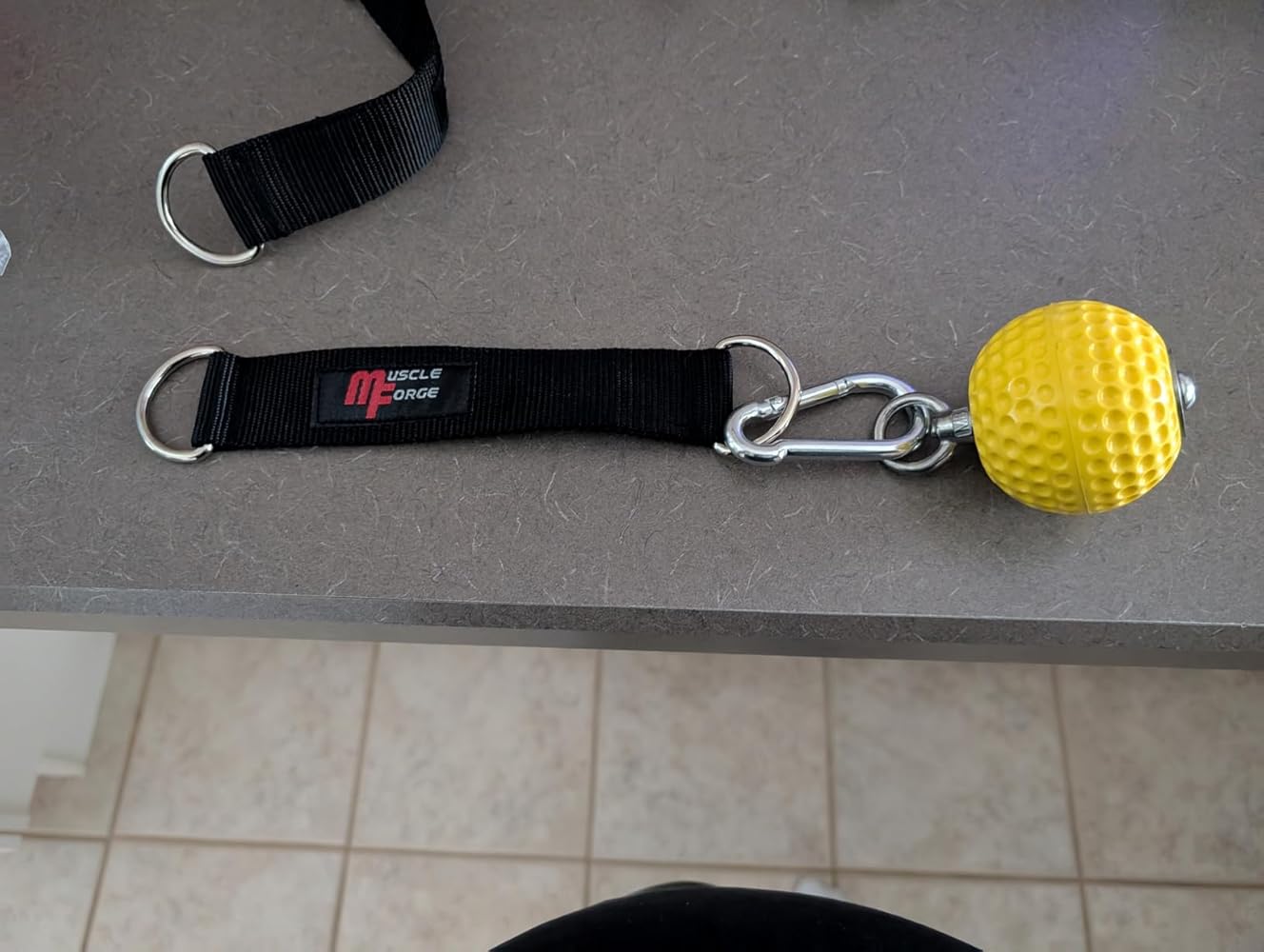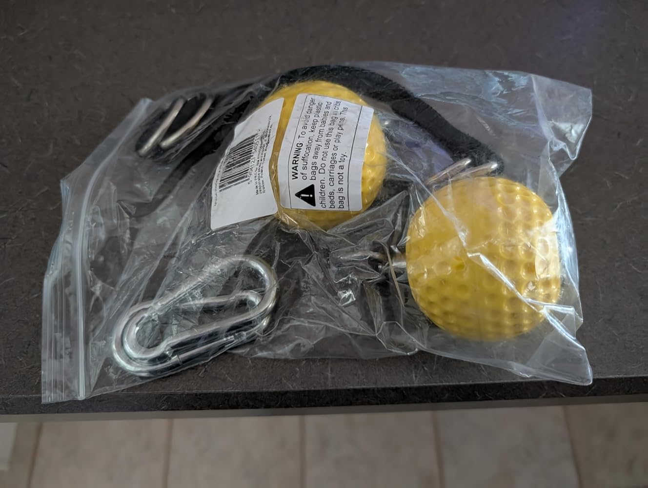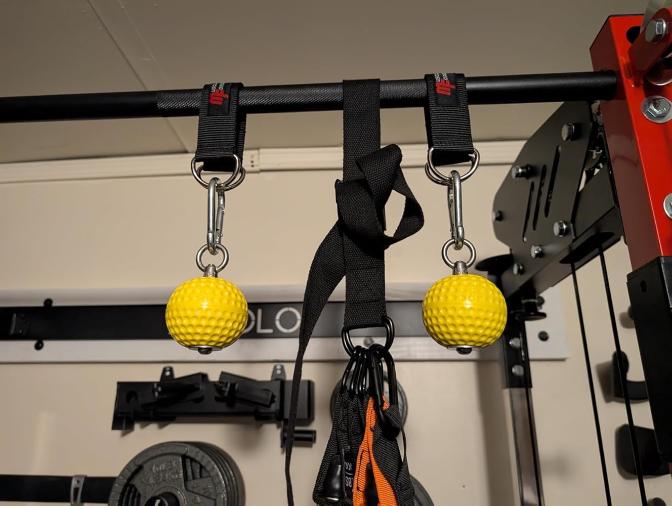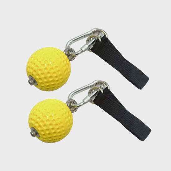 As if pull ups were not hard enough...they sure add more to that challenge. :) Interesting set , perfect for folks who like to train hard .Comes with 2 yellow ball grips , 2 carabiners & 2 Straps. All good quality materials incl nylon webbing.2.8 inch dia ball has a soft texture which make your forearm work harder as you grip while performing pull ups or chin ups. Really like this unique bundle from 100 spartans .