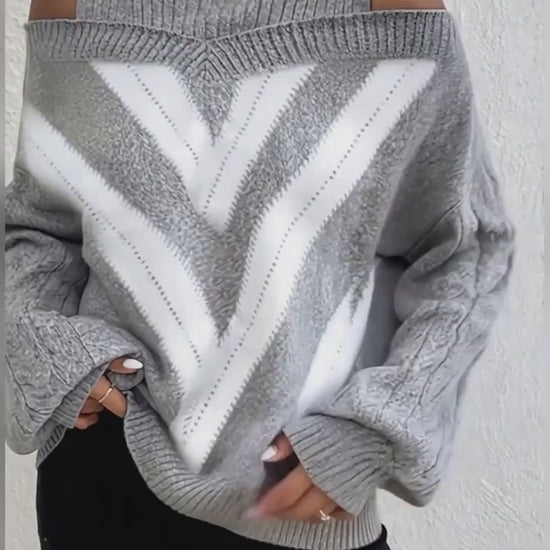 Designed with subtle stripes for a touch of sophistication, this oversized off the shoulder sweater easily transitions from casual outings to dressier occasions. Pair it with jeans for a relaxed vibe or with a skirt and heels for an effortlessly elevated look.